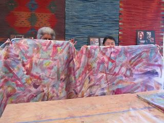 and worked through some basic but stunning dyes on two yummy substrates, did some handpainting on shibori scarves, did overdyeing with woad and spent considerable time on current trend colors and their relationships on fabric and yarn.