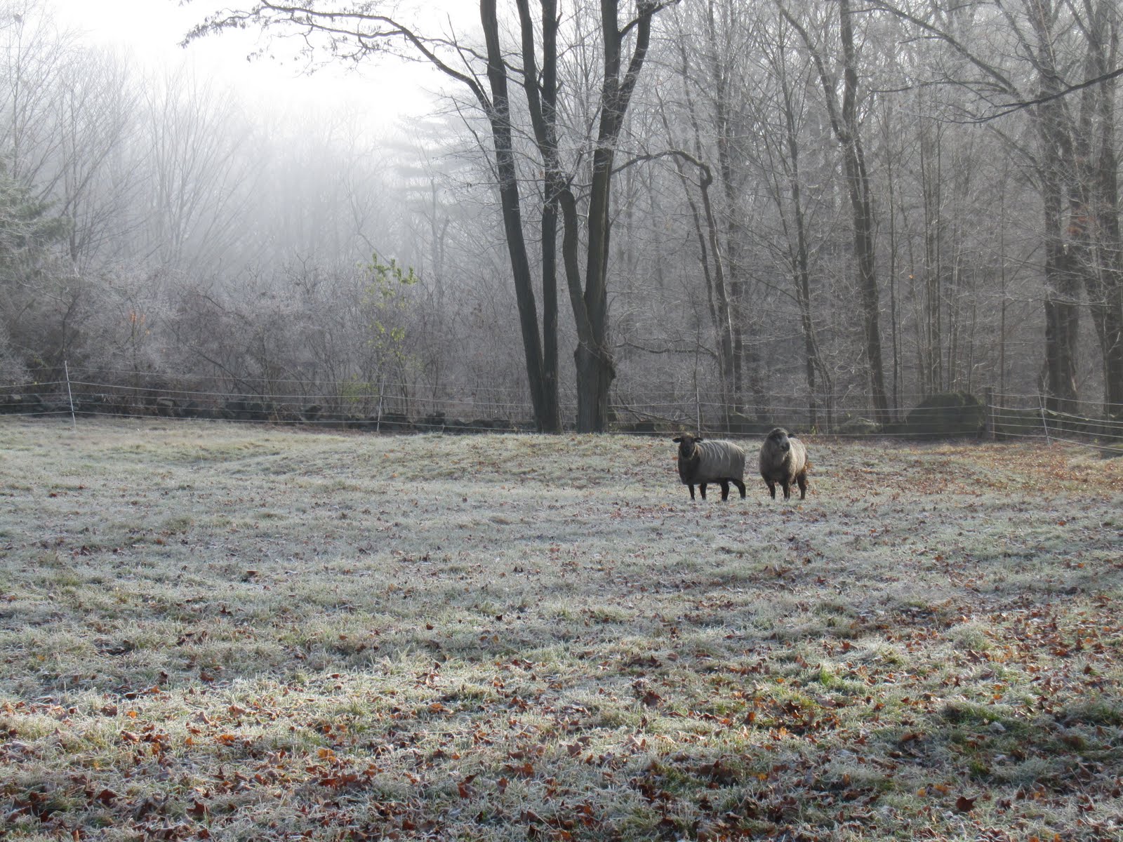 Bea and Neville rose up in the frosty morning. Yet another capture in the night. A lamb or two, for sure, come spring.