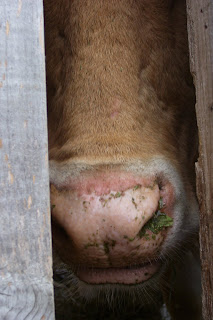 We had a great time maple sugaring here in town yesterday with Reggie and Norman, more on that tomorrow…”Fosta”, Reg and Shannon’s Guernsey cow, sums it up completely! No matter what life hands you, it’s all good. She was enjoying an alfafa snack.