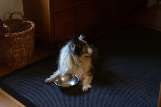 It is touch and go but just last night she wolfed her after dinner bones (wouldn’t eat dinner) and then a small piece of boiled chicken breast, and a Puperoni. She was on a roll. Here she is enjoying that Puperoni!