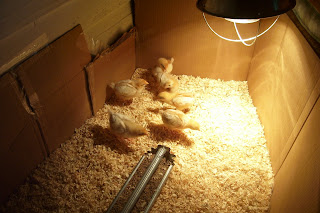 Just arrived. Six cute little Buff Sex Links. All now to be collectively known as Buffy. Chickens, a great source of daily entertainment AND eggs!