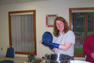 Last Saturday I traveled to CT to teach the Yankee Fiber Friends guild how to dye with indigo. There were 12 participants, a fantastic pot luck lunch, torrential rains, thunder and lightning, lots of laughter and some fabulous blues! Indigo blues, that is. Thank you one and all!