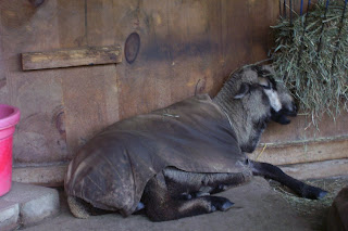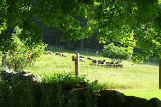 Pasture season has begun for grazing and haying. The first few days of June we took the flock to one field during the day and brought them back in the evening to their winter barn. Sunday when they came back to the barn, we’d no sooner gotten there when Tybee lay down to chew his cud, then Ashley and Wetherby and before 5 minutes had passed they were all down chewing away. It was so serene and peaceful and then I knew our sheep have very little stress to just lie down so quickly with me present. Comfortable! And Jasper, the second picture….out like a light!