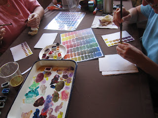 the color exercises continue…we are now in paint boxes working on taking a primary color to it’s compliment through careful mixing and blending…challenging work