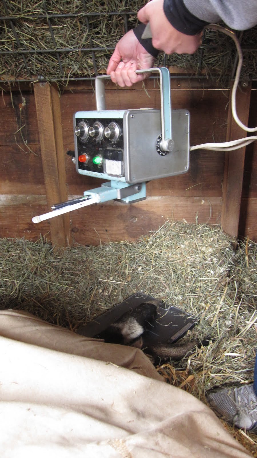 With no clear answer, I bit the bullet (with Peach) and opted to x-ray the leg to be sure there wasn’t a fracture. At least it would rule something out. After a mild sedative we got Peach on her side and I held her, although she was quite peaceful, for the films.